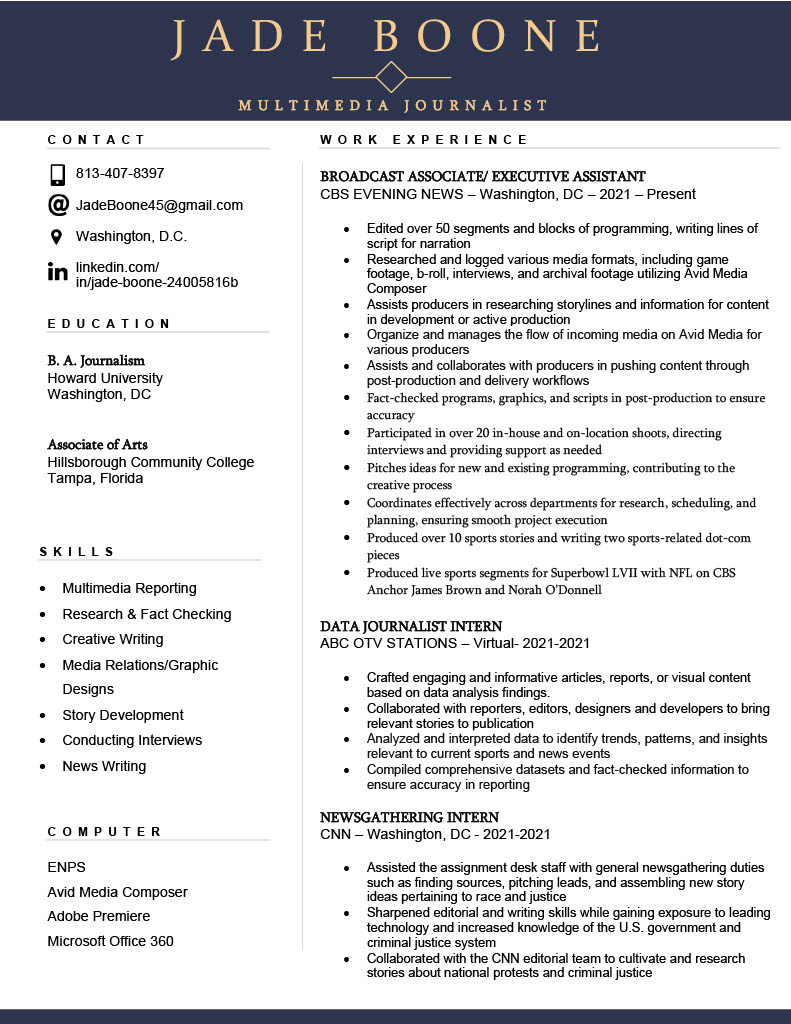 Resume Click below to view my Resume Jade Boone Resume Current ’24Download Share this: Share on X (Opens in new window) X Share on Facebook (Opens in new window) Facebook Like Loading...